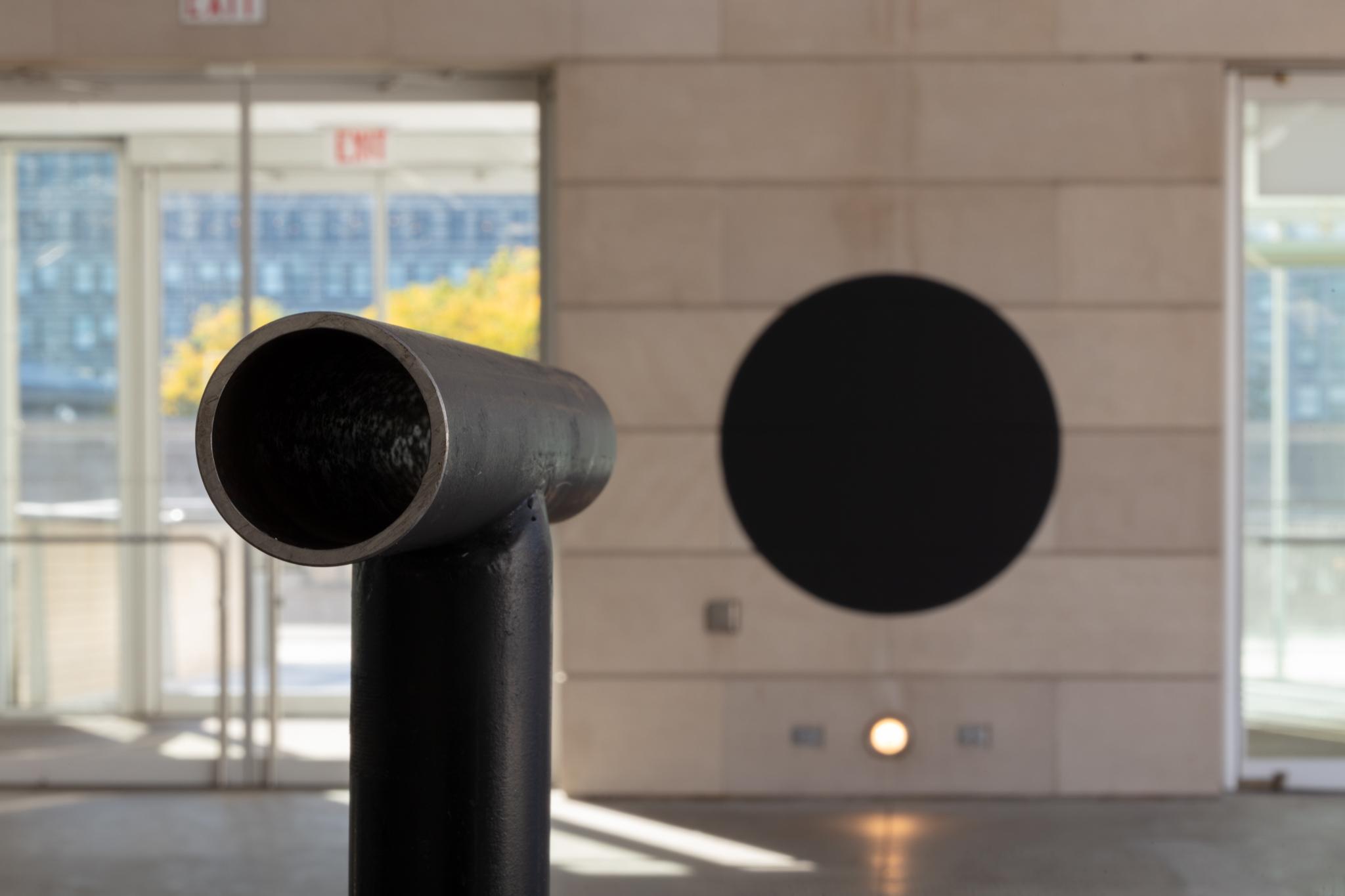Nancy Holt: Seeing in the Round, conceived in collaboration between the Foundation and the Art Institute of Chicago, presents two historical works—Dual Locators (1972) and Locator (PS1) (1980)— for the first time out-of-doors on a sculpture terrace, where the interior and exterior architecture of the museum are in constant dialogue with each other and the surrounding city. Drawing awareness to the act of looking, these devices ask us to attend to our individual experience of vision, while challenging the presumption that how we see is in any way self-evident. In counterpoint, the two 1971 sculptures Locator (Exhaust Pipe) and Locator (Two Windows) are on show indoors, in the adjoining Terzo Piano space.