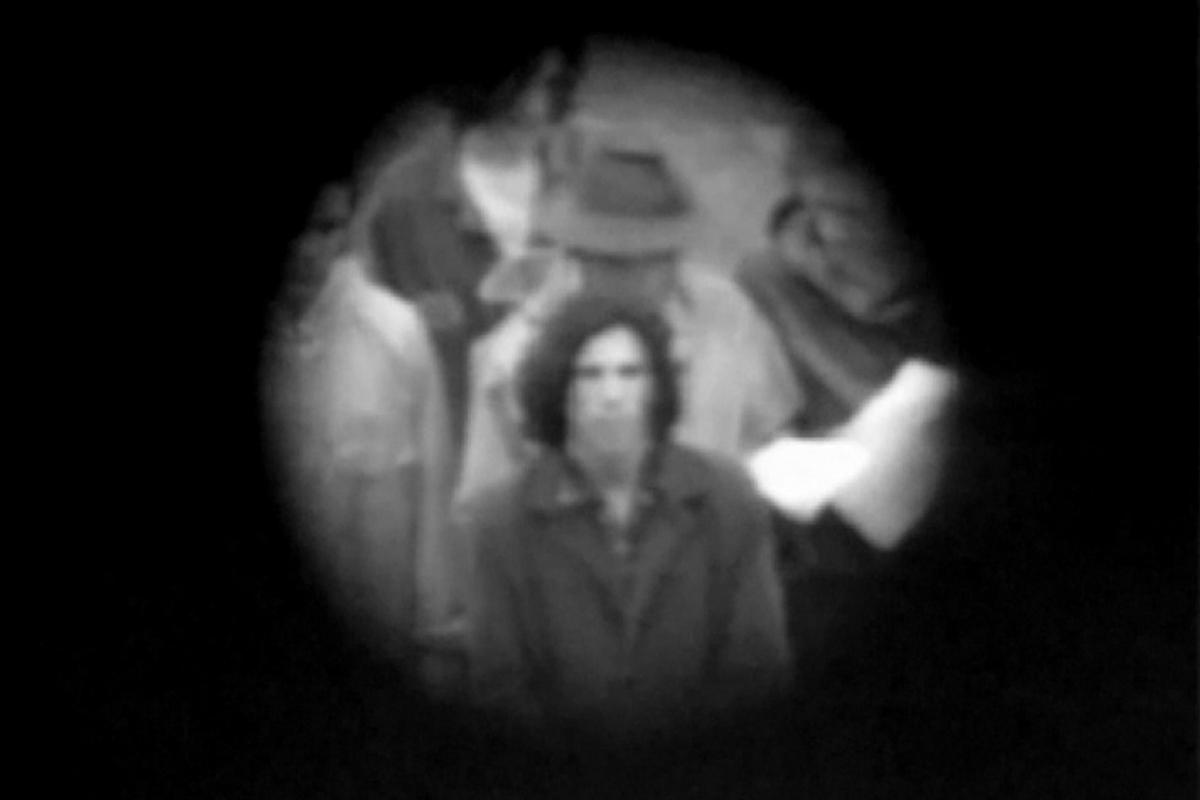 A board perforated with five circular holes was placed in front of the camera. These apertures are variously covered and uncovered and through the circle five subjects are seen moving between five points, following instructions to turn in circles. This recording was then watched by Holt, Kurtz, and the students. Their discussion of the experience of the performance, sharing how it is perceived on the ground and through the playback monitor, forms the soundtrack.